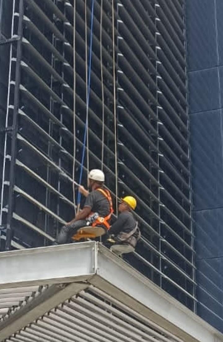 Limpeza via Rapel com técnica de alpinismo industrial.